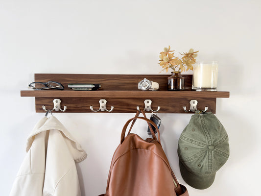 Make a great first impression with our wall mounted coat racks and shelves, handcrafted in the USA from premium hardwoods. Each wood coat rack is built for style and function—whether you need a reliable coat hanging solution or a complete entryway wall organizer for keys and mail.